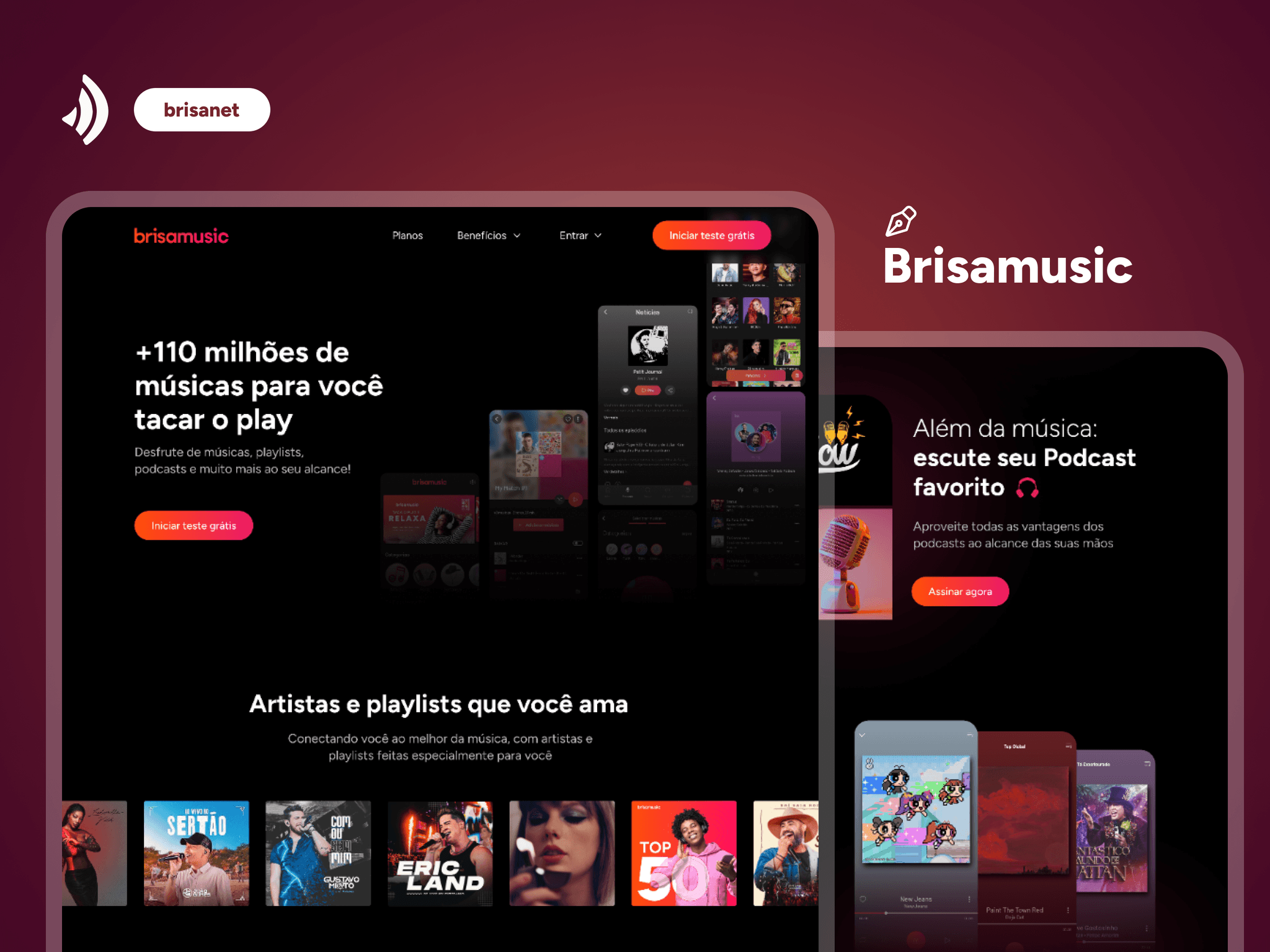 Design de produtos web e mobile: Brisacliente e Brisamusic;